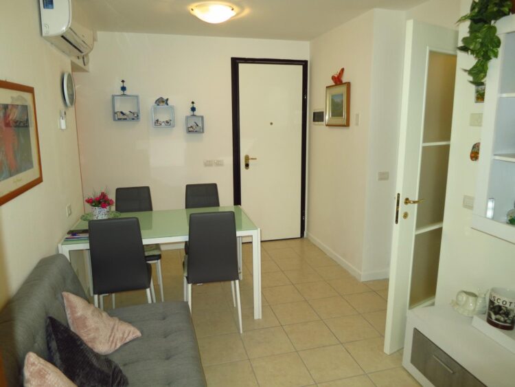 Luminoso appartamento bilocale zona centrale al primo piano con ascensore composto da ingresso, soggiorno con divano letto, cucinino, camera matrimoniale, bagno, terrazzo, tv e aria condizionata. Appartamento sfornito di lavatrice.