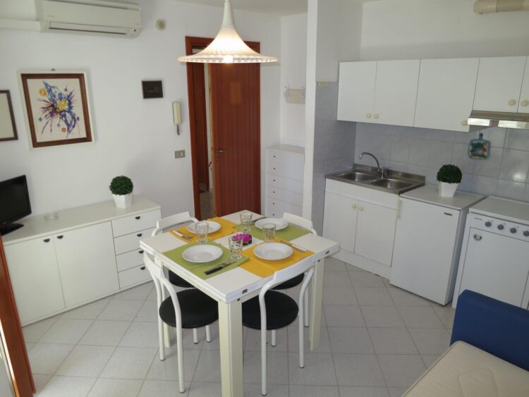 Affittasi Grado Città Giardino di fronte alla spiaggia appartamento bilicale al piano rialzato composto da ingresso, soggiorno con divano letto matrimoniale, cucinino, camera matrimoniale, bagno, ampio terrazzo, tv, lavatrice, aria condizionata e garage. APE: classe G.