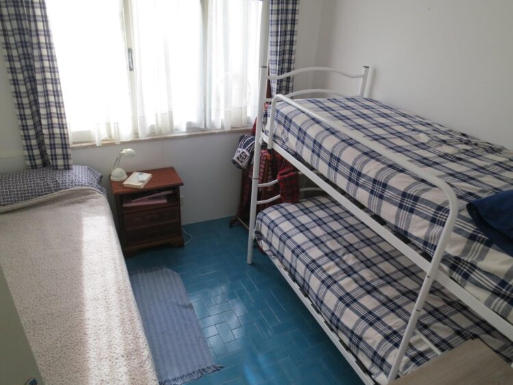 Affittasi a Grado in zona Città Giardino appartamento al secondo piano di una piccola palazzina inserita in un grazioso contesto immerso nel verde. L’appartamento è composto da ingresso, soggiorno con due divani letto singoli e un grazioso balconcino, cucinino, camera da letto con un letto singolo e un letto a castello, bagno con doccia. Dotato di TV, lavatrice, aria condizionata in soggiorno e in camera da letto e posto auto coperto.
